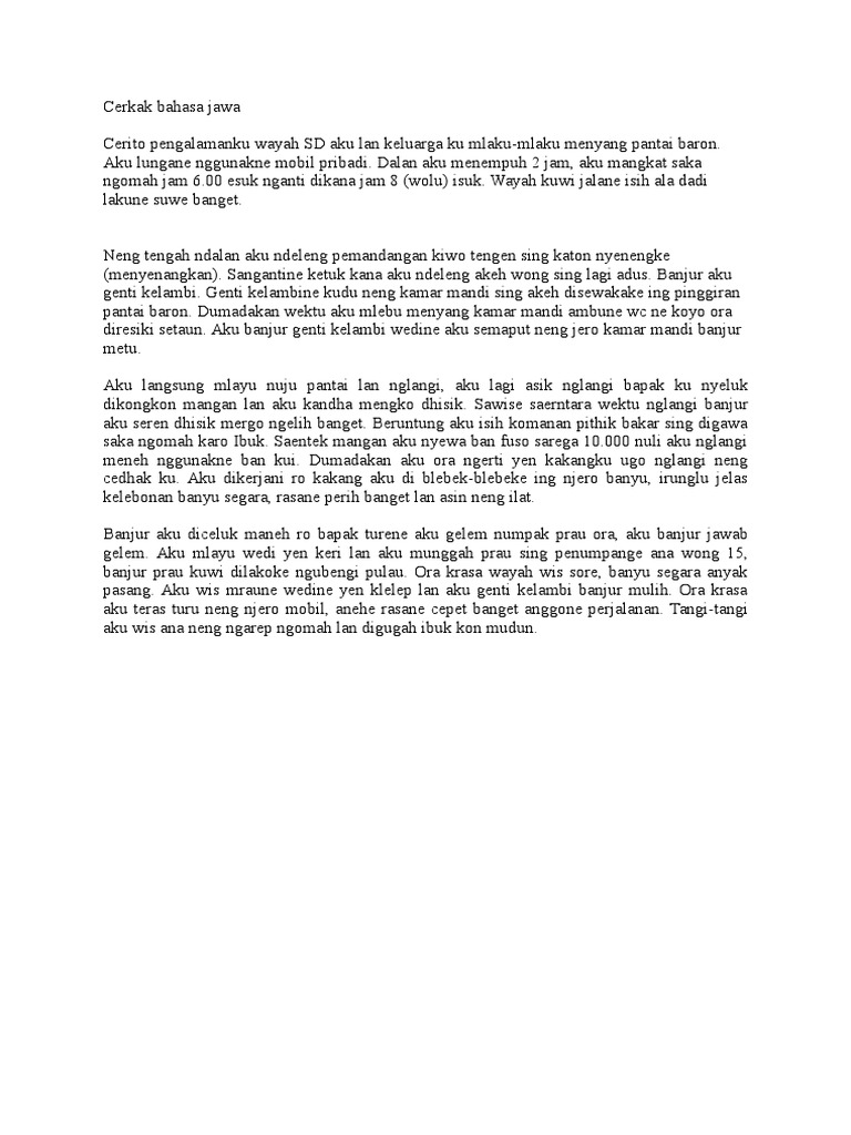 Contoh cerkak bahasa jawa pendidikan. Contoh cerkak bahasa tema jawa cinta. Di dalam cerita cekak bahasa jawa ini menceritakan sebuah keluarga yang mempunyai bapak sedang menderita penyakit gagal ginjal, pak ibrahim mempunyai empat anak yang bernama. Cerkak tema pendidikan, melu lomba cerdas cermat. Cerkak di dalam bahasa indonesia dinamakan cerpen.